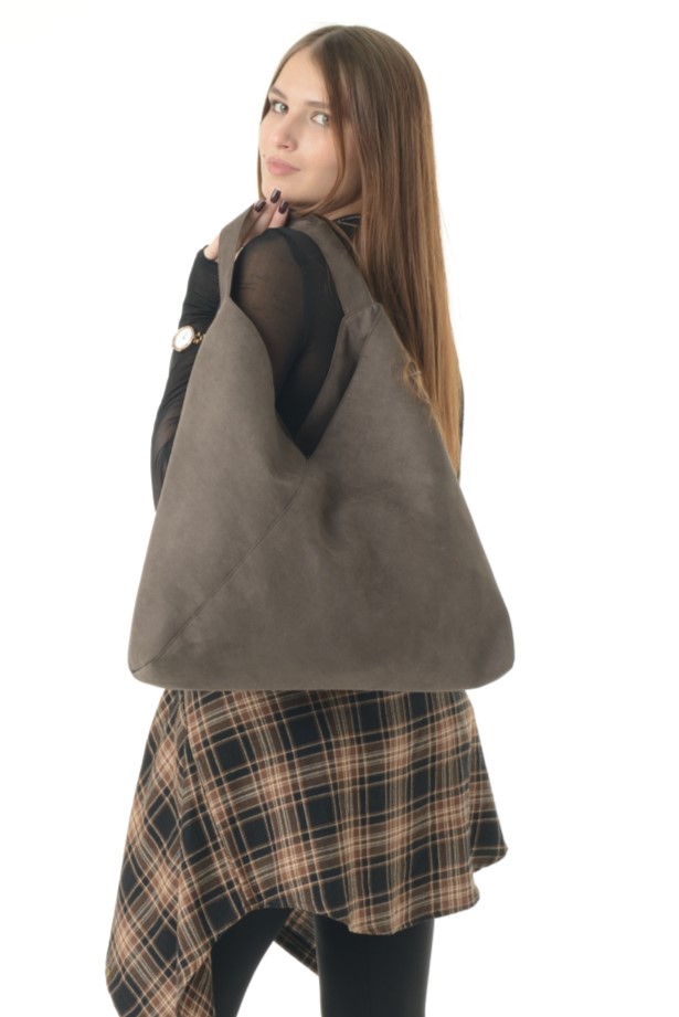 Стильная и вместительная женская сумка-шоппер необычной треугольной формы — ваш идеальный аксессуар на каждый день. Модель сочетает в себе оригинальный дизайн и практичность, подчеркивая вашу индивидуальность и чувство стиля. Сумка выполнена из качественного искусственного велюра. Благодаря лаконичному дизайну и строгим линиям, она гармонично дополнит как деловой образ, так и повседневный лук для прогулок, учебы или встреч с друзьями.